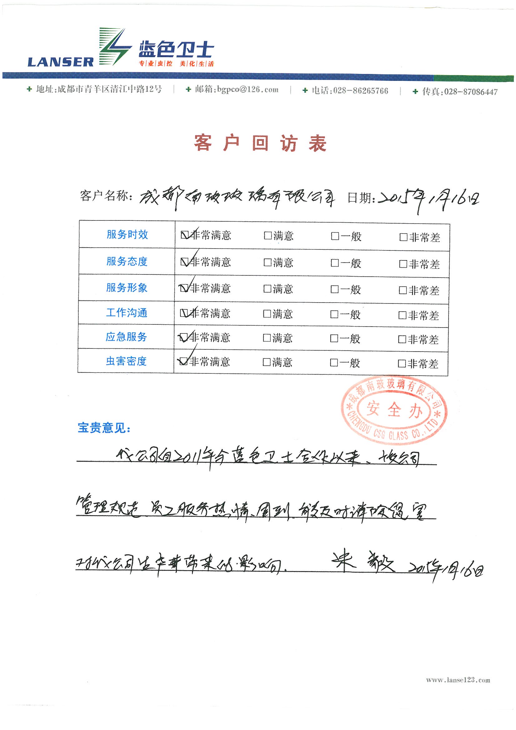 南玻玻璃对我公司服务质量的评价: