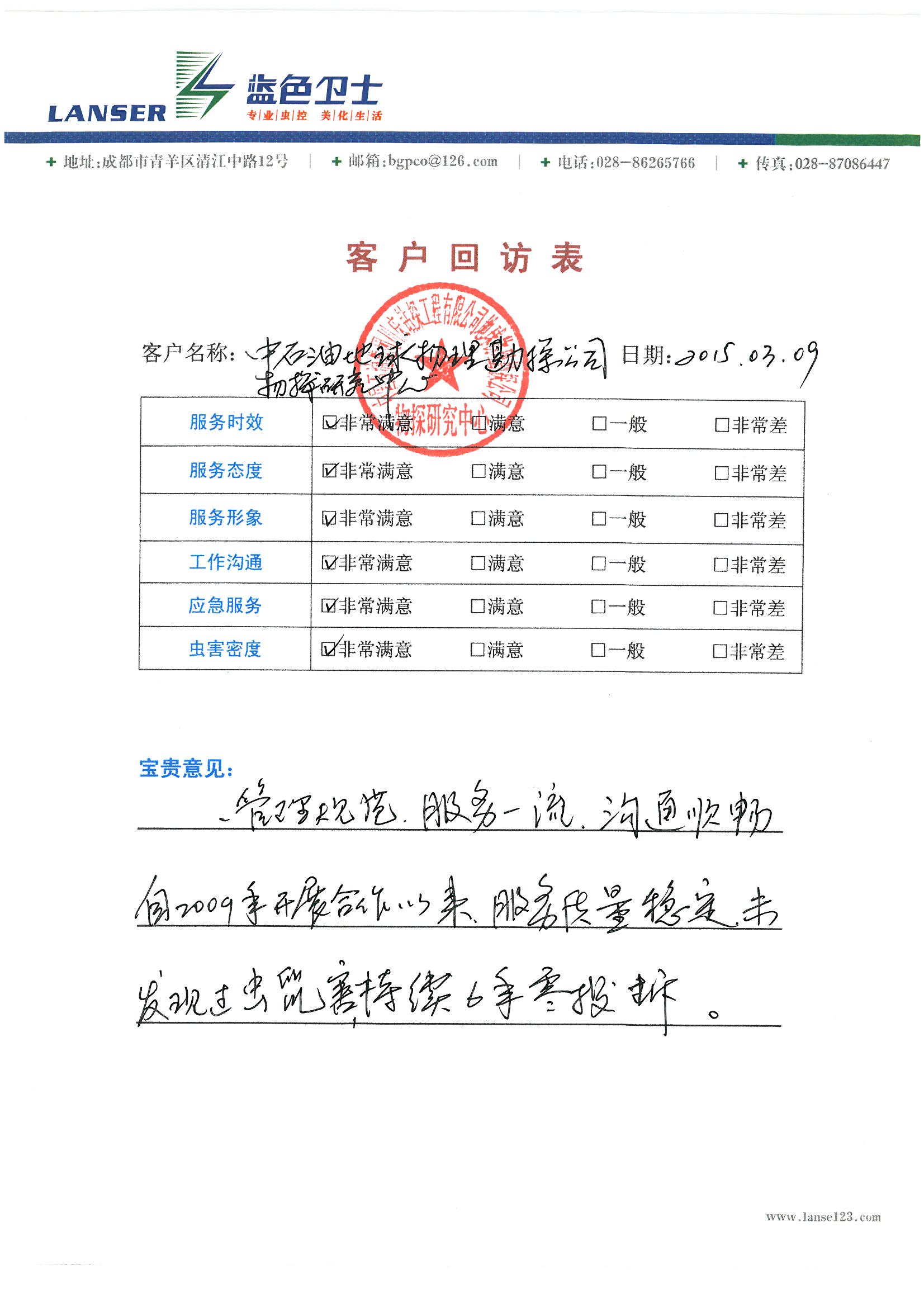 管理规范、服务一流、沟通顺畅,自2009年开展服务合作以来质量稳定,未发现过鼠虫害,持续6年零投诉!