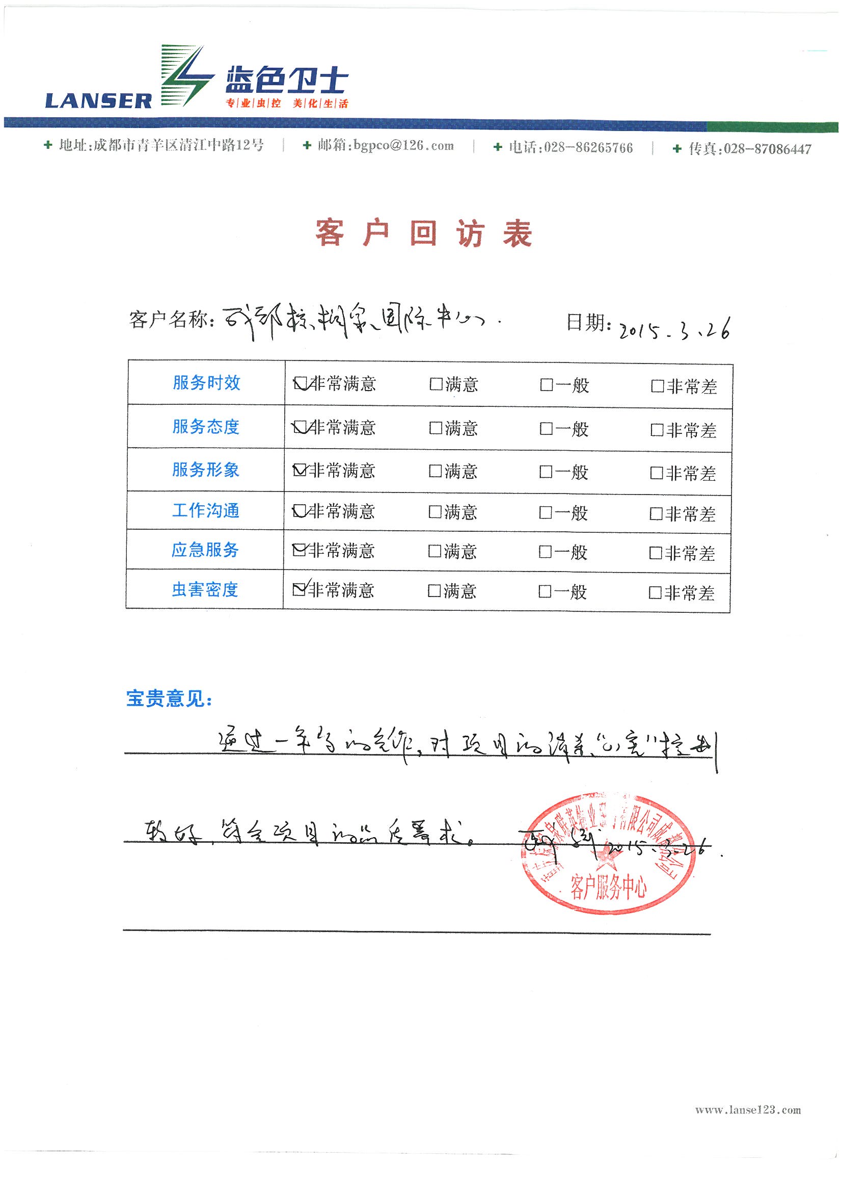 通过一年的合作,对项目的消杀、四害控制的较好,符合项目的品质要求!